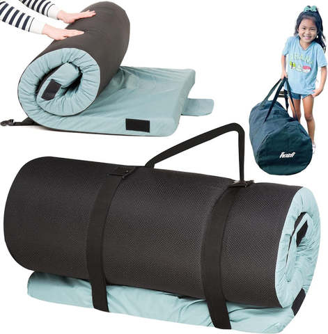 2024 en iyi seçim ürünleri için 4 inç taşınabilir yatak katlanır Mat Topper ikiz kamp konuk yürüyor taşıma çantası gri